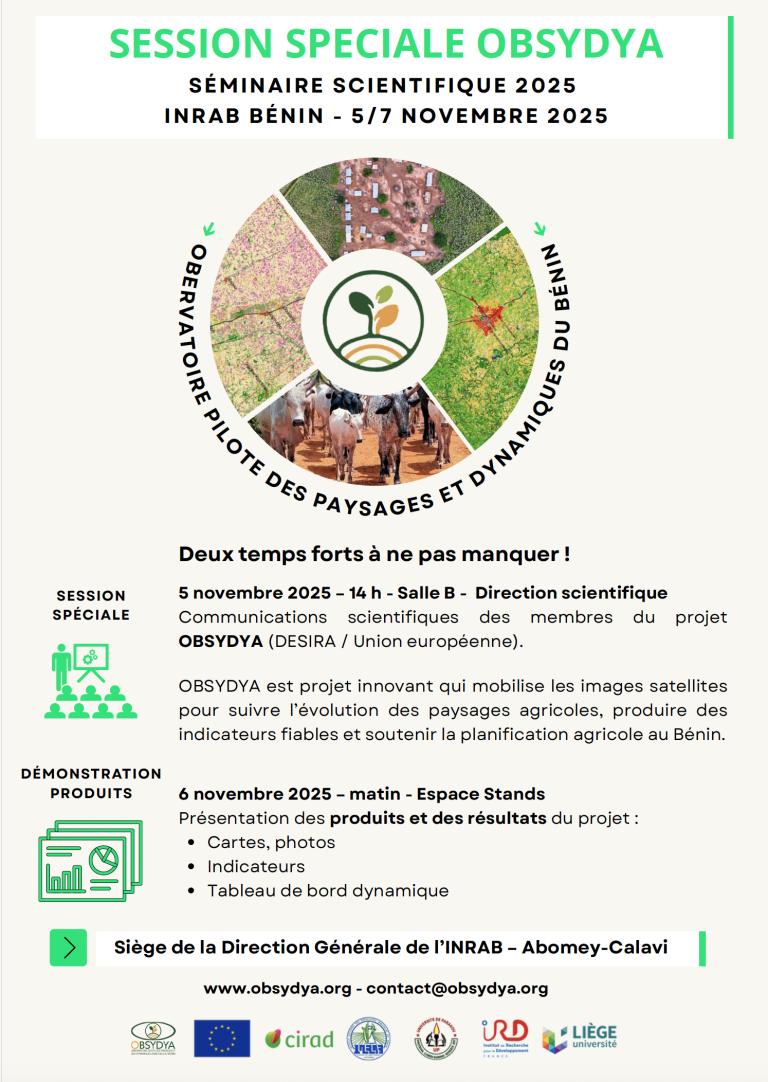 Du 5 au 7 novembre 2025, l’INRAB organise un séminaire scientifique. Une session spéciale est dédiée au projet OBSYDYA ainsi...